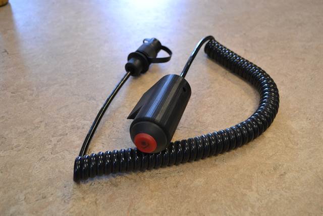 Fjernbetjening til Saltnex Trolley. Bruges til start og stop når trolley er hægtet på redskabsbærer.