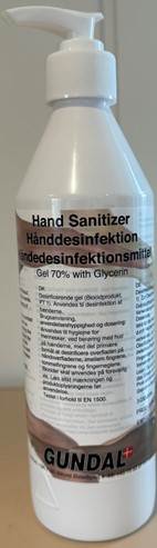 Anvendes til til hygiejne for mennesker, ved berøring med hud på hænderne, med det primær formål at desinficere overfladen på håndoverfladen, imellem fingerne, tommelfingrene og fingerneglene.