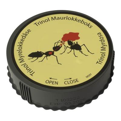 Læs og følg instruktionerne for anvendelse. Åben lokkedåsen ved at dreje den øverste del mod uret til et klik lyder. For at opnå den største effekt er det vigtigt at fjerne evt. madrester eller andre former for fødevarer som myrer kan have adgang til. Afhængig af placering og mængden af myrer, skal der anvendes flere lokkedåser i omgivelserne hvor myrerne befinder sig. Behold emballagen indtil endt brug af produktet.Opbevares væk fra lys.