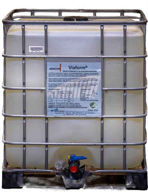 Biologisk nedbrydelig ved almindelig spildevandsbehandling. Viaform er udviklet og produceret af Addcon Nordic A/S (tidligere Norsk Hydro).