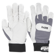 Kalveskindshandske med stofoverhånd og velcro-ribkrave. Til lettere industriarbejde, pakning, montage, havearbejde eller som ridehandske. Stor fingerføling.