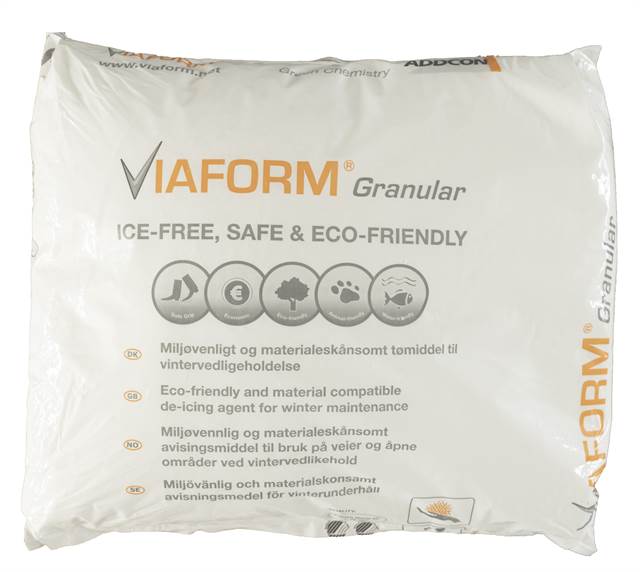 Viaform Granular (tidligere Viaform Solid) er et ekstremt virkningsfuldt is- og snesmeltningsprodukt i granulatform. Produktet er udviklet af Norsk Hydro og godkendt efter de skrappe regler indenfor luftfart og anvendes med stor succes i lufthavne i både Danmark, Sverige, Norge og Tyskland. Produktet er gennemtestet af ”Hygiene Institut” i Tyskland - resultatet var: ”Produktet er ufarligt for mennesker, dyr og organismer, der lever i vand. Biologisk nedbrydelig ved almindelig spildevandsbehandling”.