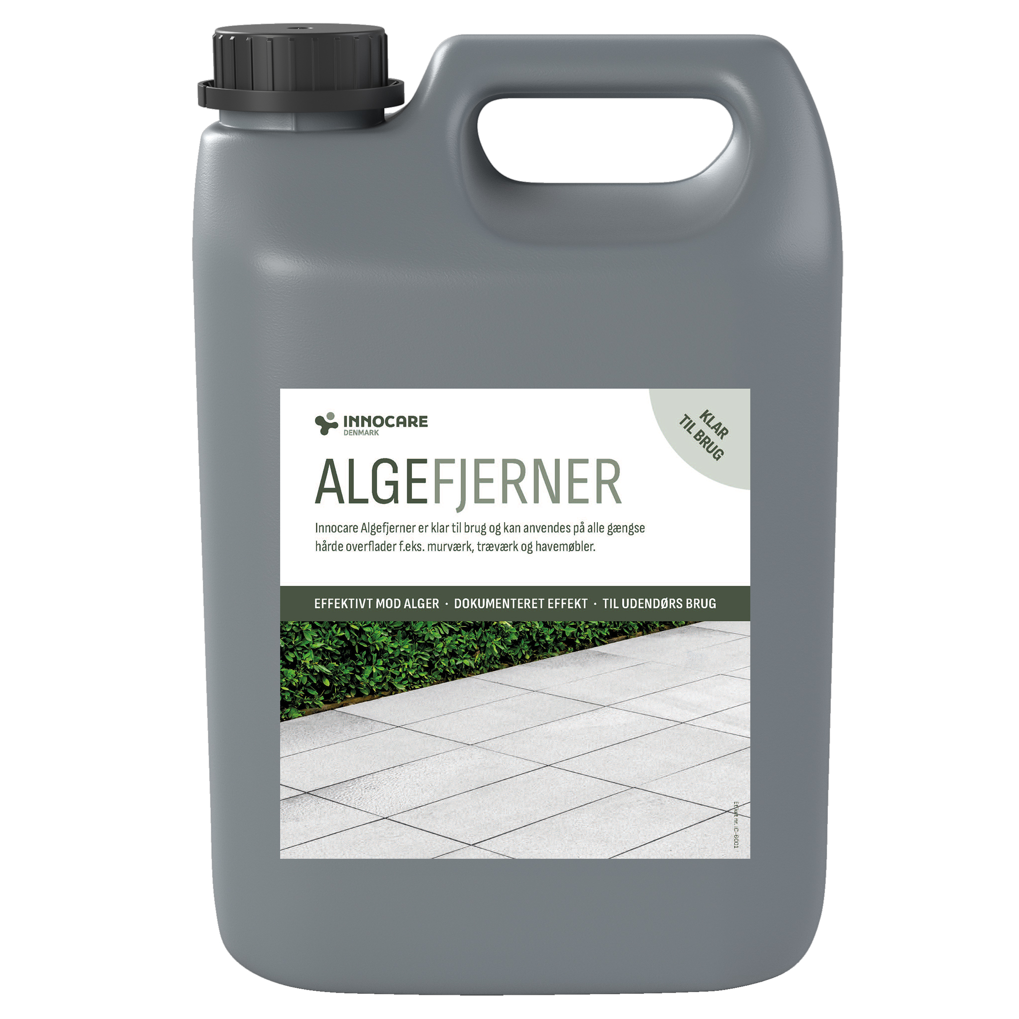 INNOCARE ALGEFJERNER fjerner effektivt alger på: Beton, sten, træ, tegl, plast, metal og glas udendørs. INNOCARE ALGEFJERNER er pH-neutral og derfor velegnet udendørs, til alle hårde overflader. INNOCARE ALGEFJERNER er farveløs og misfarver ikke overfladen.
