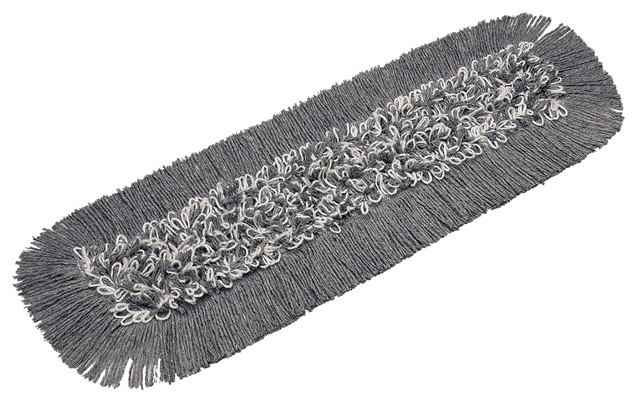 Garnmoppe med polyester, microfibergarn og viskose. Løkkerne af microfibergarn samler snavs. Det klippede garn absorberer og transporterer fugt. Super til at fjerne sand og snavs. Anvendes med 100% fugt for at opnå den bedste rengøringseffekt. Bruges fugtig på tørre overflader til opsamling af støv og løse partikler. Den fugtige moppe efterlader ikke væskespor på overfladen, men danner en fugthinde, der hurtigt fordamper. Fugten hjælper med at samle støvet og forhindrer, at støv hvirvles op i luften. Efterlader ikke overskydende, snavset vand, hvor bakterier og skimmel kan trives. Har højeste kvalitet på velcro. Moppen kan anvendes fugtig, direkte fra vaskemaskinen, eller fugtes i Vikan ErgoClean® moppeforberedelsesboks. Alle mopper med velcrobagside passer til de nye Vikan ErgoClean® moppefremførere med velcro. Alle Vikan ErgoClean® mopper kan vaskes ved temperaturer op til 95º C og tørretumbles ved 55° C. Brug aldrig klor eller andre blegemidler. Skyllemiddel er skadeligt for moppen.